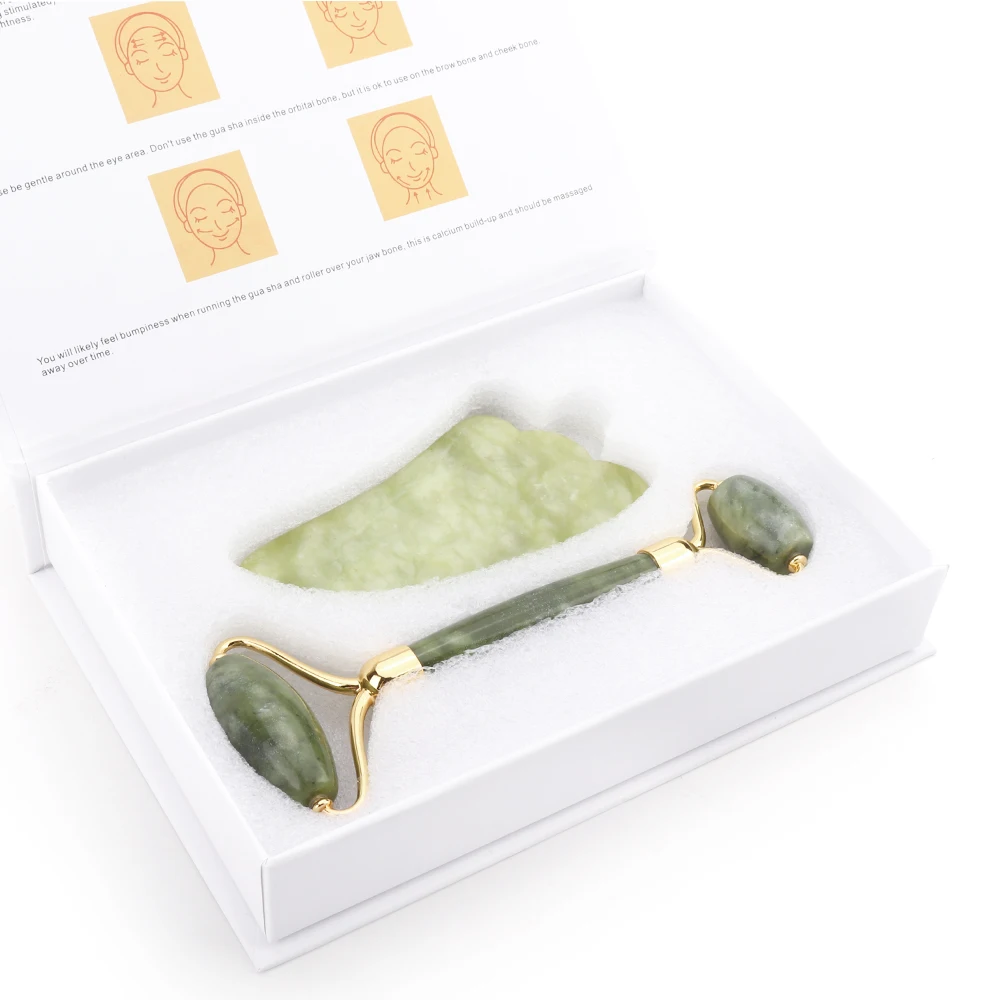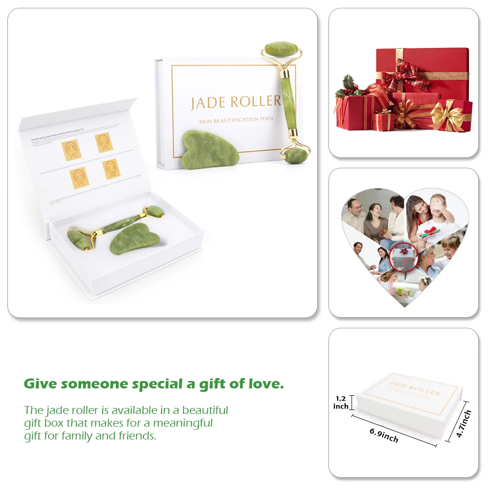 Cada rolo e gua sha pedra combinação vem com uma caixa de presente opcional.